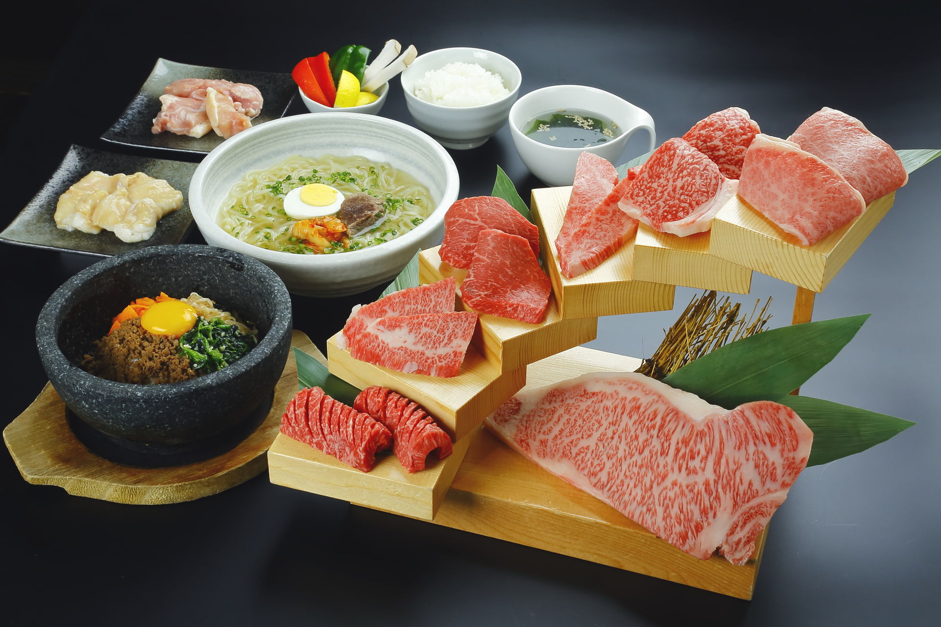 自社牧場で育てた黒毛和牛の焼肉や熊本郷土料理の馬刺し。